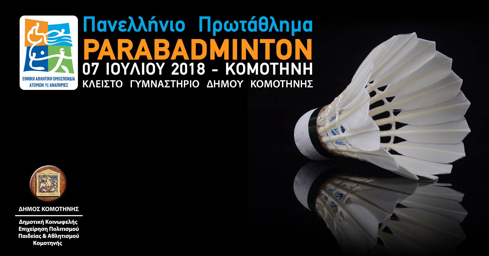Με τη συμμετοχή 11 αθλητών και αθλητριών από πέντε συλλόγους, διεξάγεται το Σάββατο 7 Ιουλίου στην Κομοτηνή, το 2ο πανελλήνιο πρωτάθλημα πάρα Μπάντμιντον.