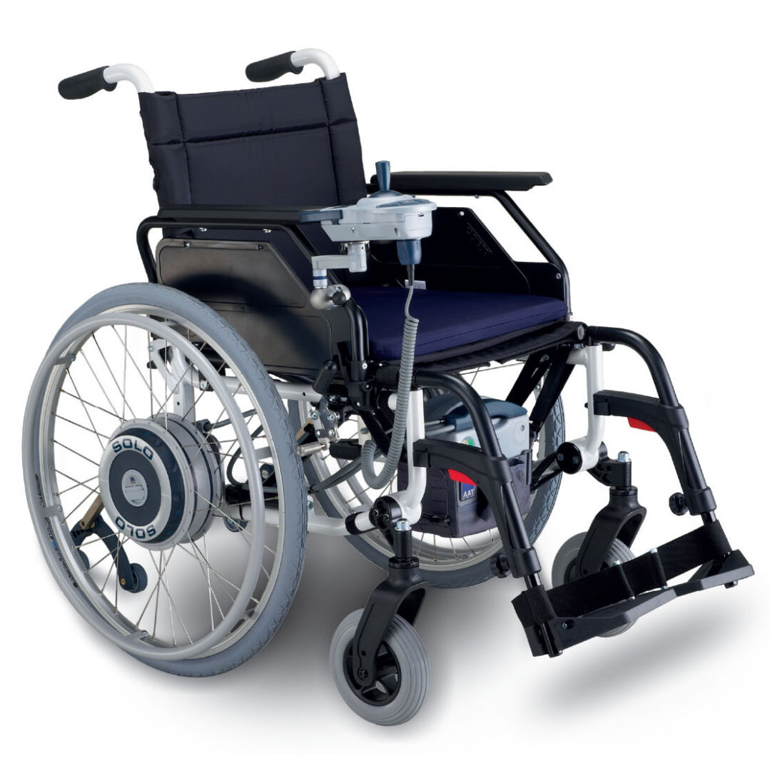 SOLO electric motors are discreetly mounted inside the wheels. Install the SOLO wheels to your wheelchair and easily convert it into a power wheelchair while maintaining the comfort of your personal wheelchair.